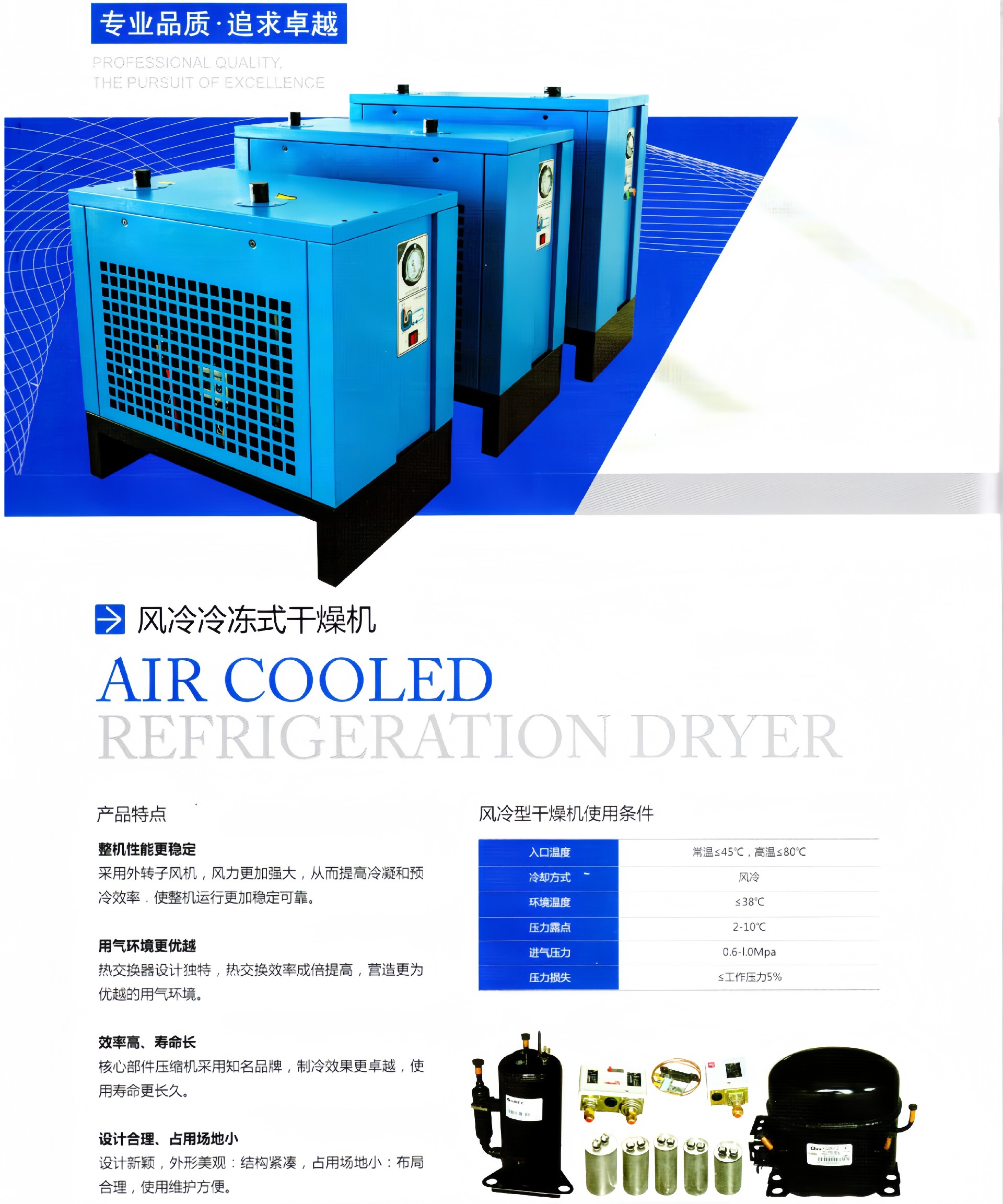 为使冷冻式干燥机在不同工况下,使其能够稳定和节能运转,欣靓牌冷冻式干燥机根据客户需求和实际使用工况分为:高温风冷型、高温水冷型、常温风冷型和常温水冷型。